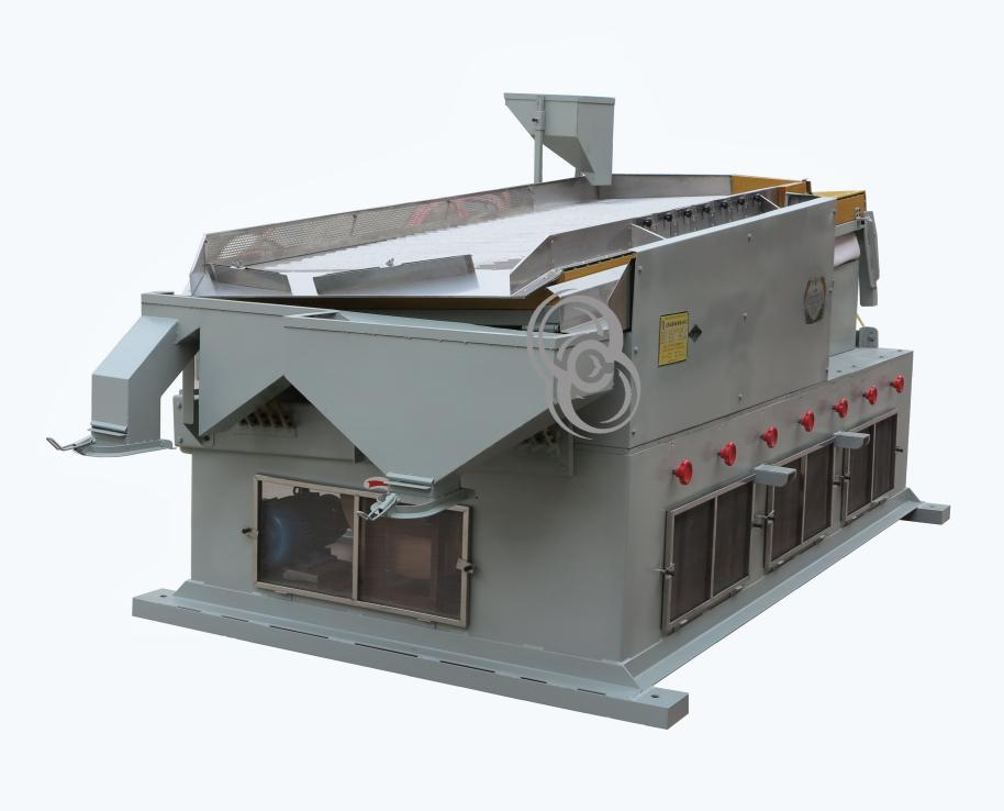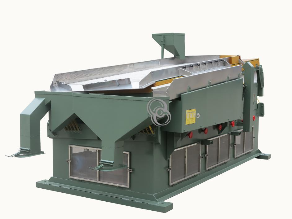 筛选体积相同而比重不同之豆类或谷类(如芝麻、绿豆、瓜子、种子等),去除未成熟与虫蛀及破碎的豆类或谷类。不受场地限制,一般加工厂均可使用。可依物料颗粒大小、干湿度,调节速度进行筛选。此机型可单机使用,配合整厂设备(如选石机、大小选别机、磨光机…等)效果更佳。