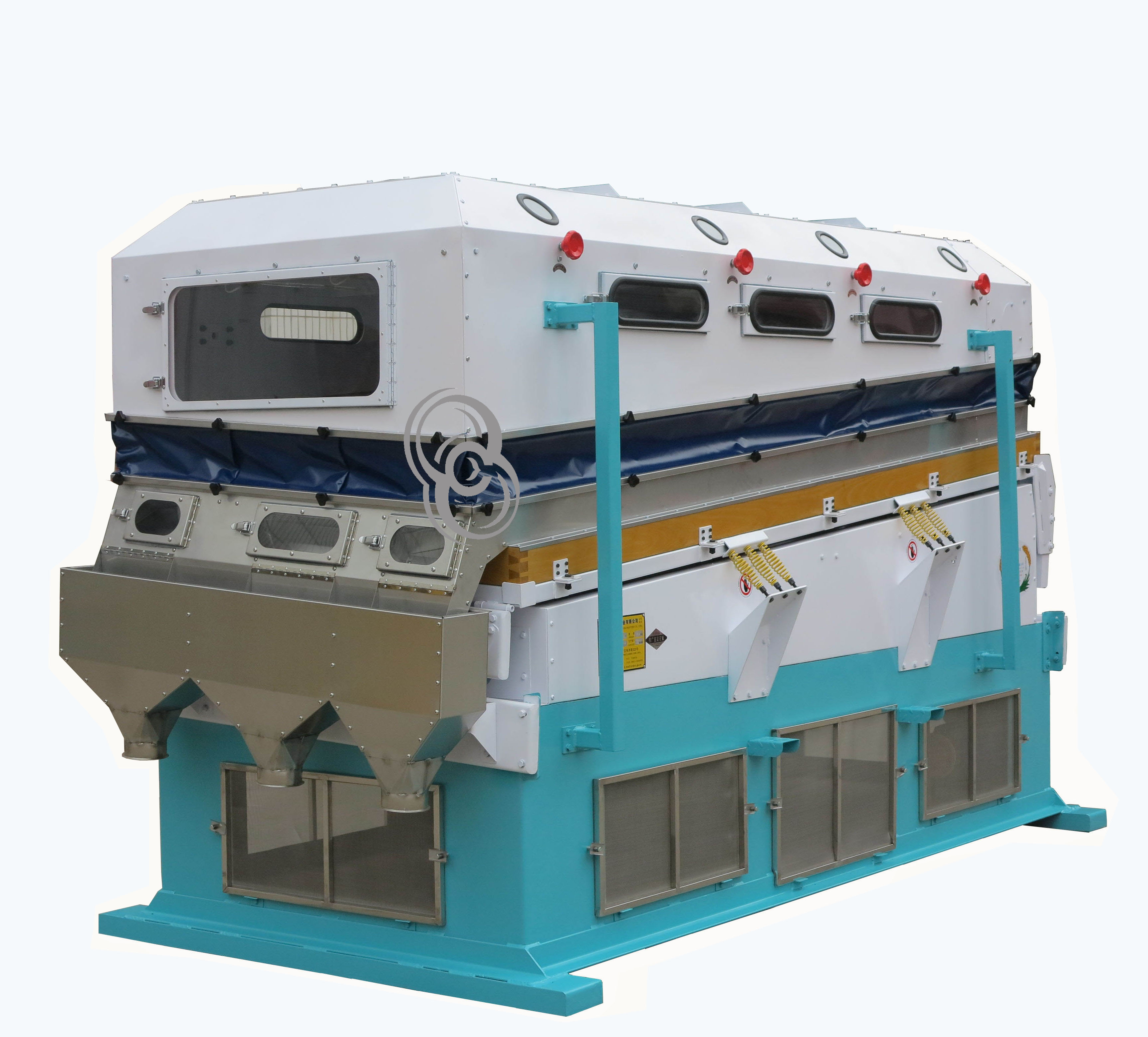筛选体积相同而比重不同之豆类或谷类(如芝麻、绿豆、瓜子、种子等),去除未成熟与虫蛀及破碎的豆类或谷类。不受场地限制,一般加工厂均可使用。可依物料颗粒大小、干湿度,调节速度进行筛选。此机型可单机使用,配合整厂设备(如选石机、大小选别机、磨光机…等)效果更佳。